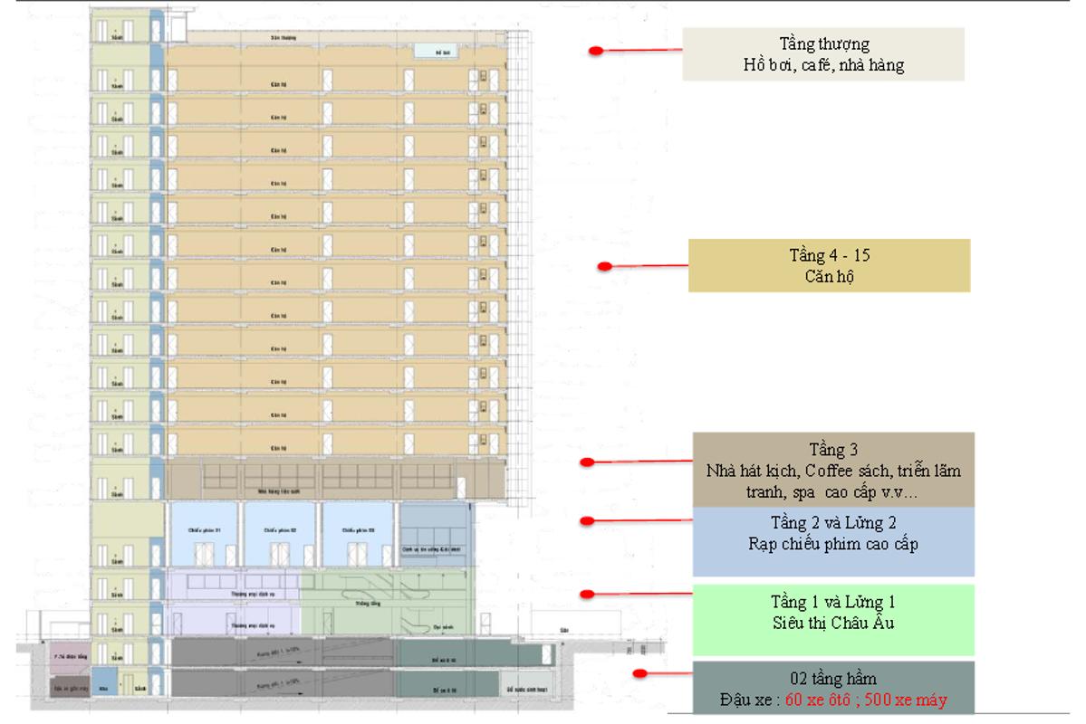 Quy mô xây dựng: Gồm 02 tầng hầm + 15 tầng cao.
