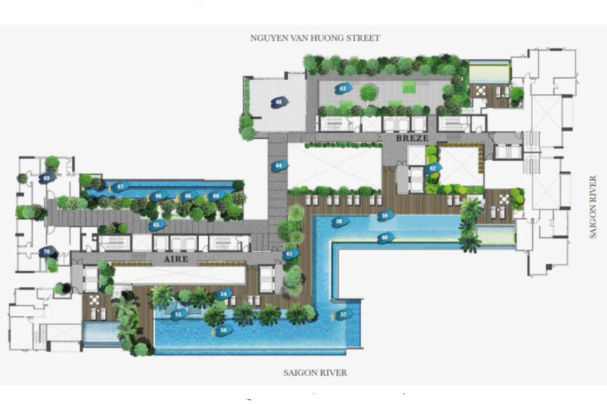 D'Edge Thảo Điền nổi bật với 2 tòa tháp Aire cùng Breze được nối với nhau bằng hồ bơi đáy kính không trung,hướng tầm nhìn ra toàn cảnh sông Sài Gòn. Dự án sở hữu điểm nhấn riêng với 70 tiện ích chú trọng sức khỏe, thể chất và tâm hồn cho cư dân.