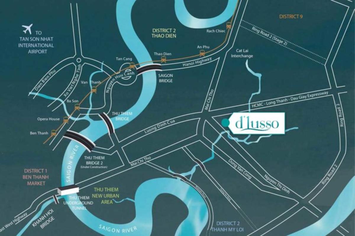 Bên cạnh đó, dự án D’Lusso còn nằm ở vị trí trung tâm của những khu đô thị lớn tại Quận 2 như: