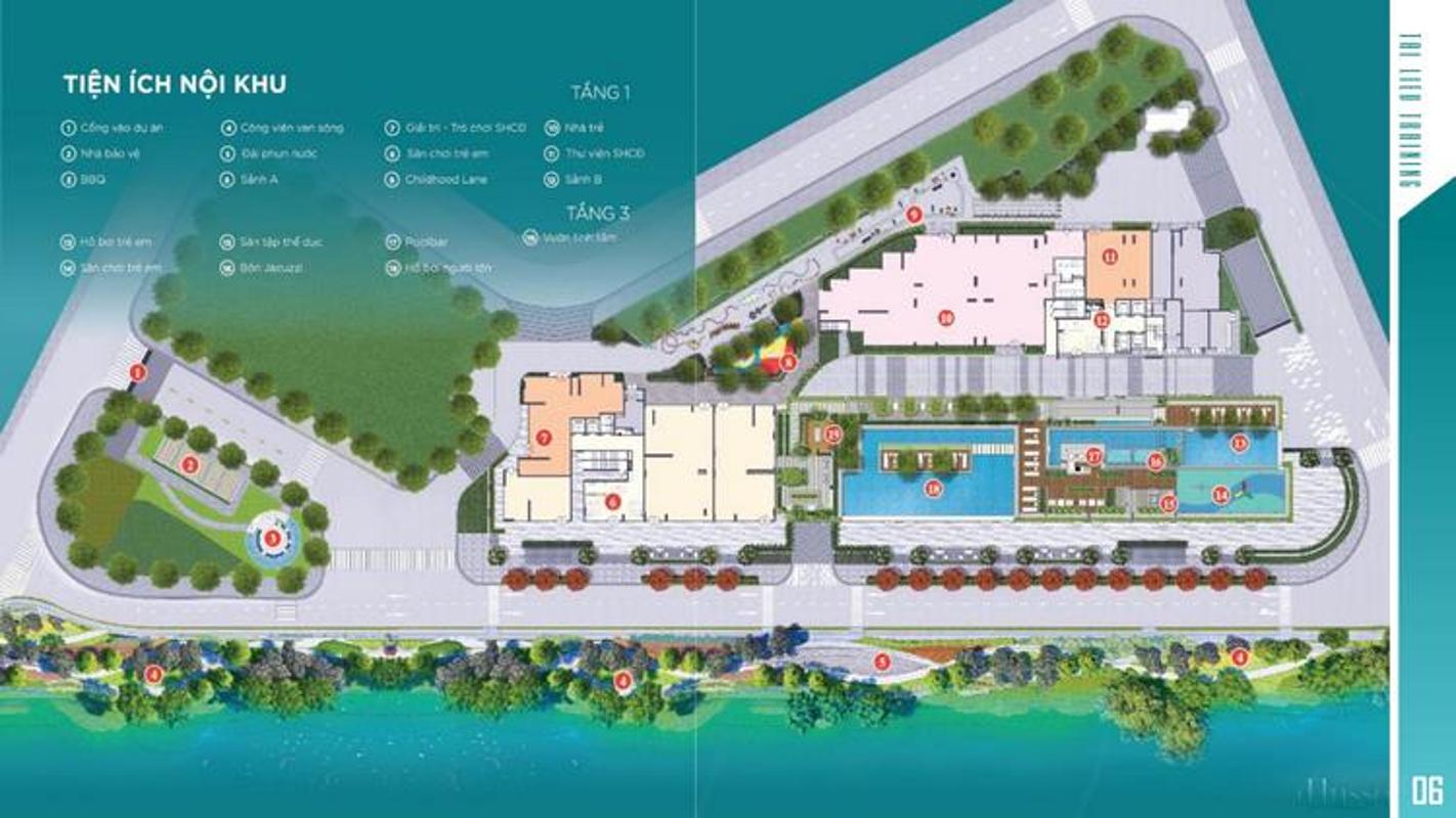 + Khu thể thao: hồ bơi, đường chạy bộ ven sông