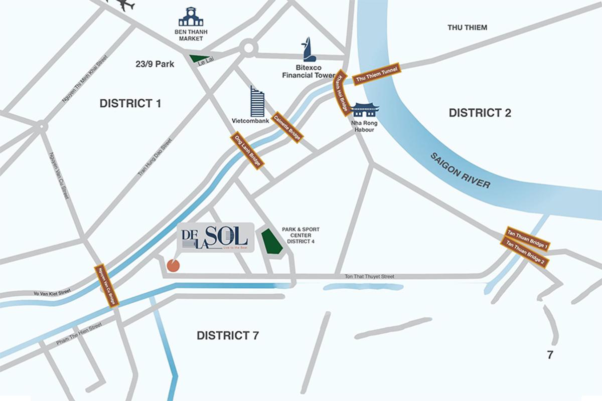 De La Sol benefits from a highly advantageous transport location on Ton That Thuyet Street, District 4, with strong potential for future value appreciation. Residents can enjoy panoramic city views and beautiful river vistas here.