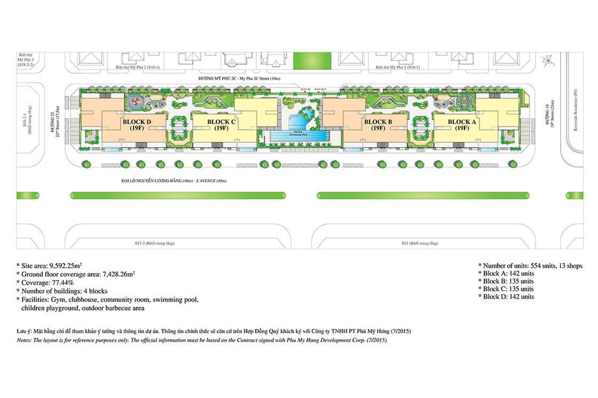 Hưng Phúc - Happy Residence sở hữu vị trí, tầm nhìn đẹp với một mặt nhìn về toàn khu Nam Viên có nhiều công viên rộng đến 5,5ha. Mặt còn lại hướng về các khu biệt thự ở Phú Mỹ Hưng (Mỹ Phú, Chateau) với kiến trúc bán cổ điển sang trọng, đồng bộ, tinh tế và nhìn ra dòng sông cảnh quan. Khu căn hộ gồm 4 tòa nhà cao 19 tầng với 554 căn hộ. 13 shop thương mại có cấu trúc 2 tầng, với diện tích sử dụng khá lớn từ 192 - 273m2, thích hợp cho nhiều loại hình kinh doanh.