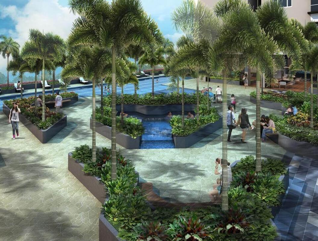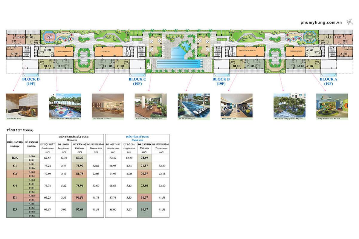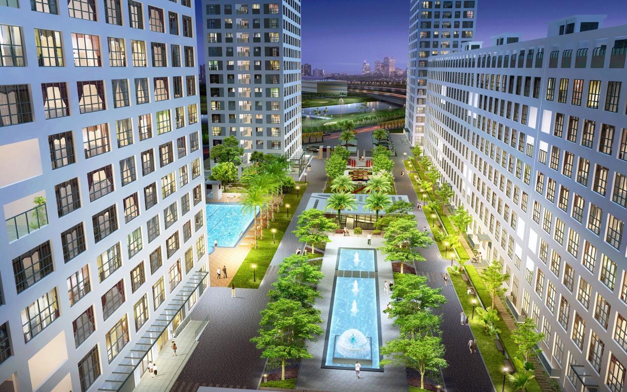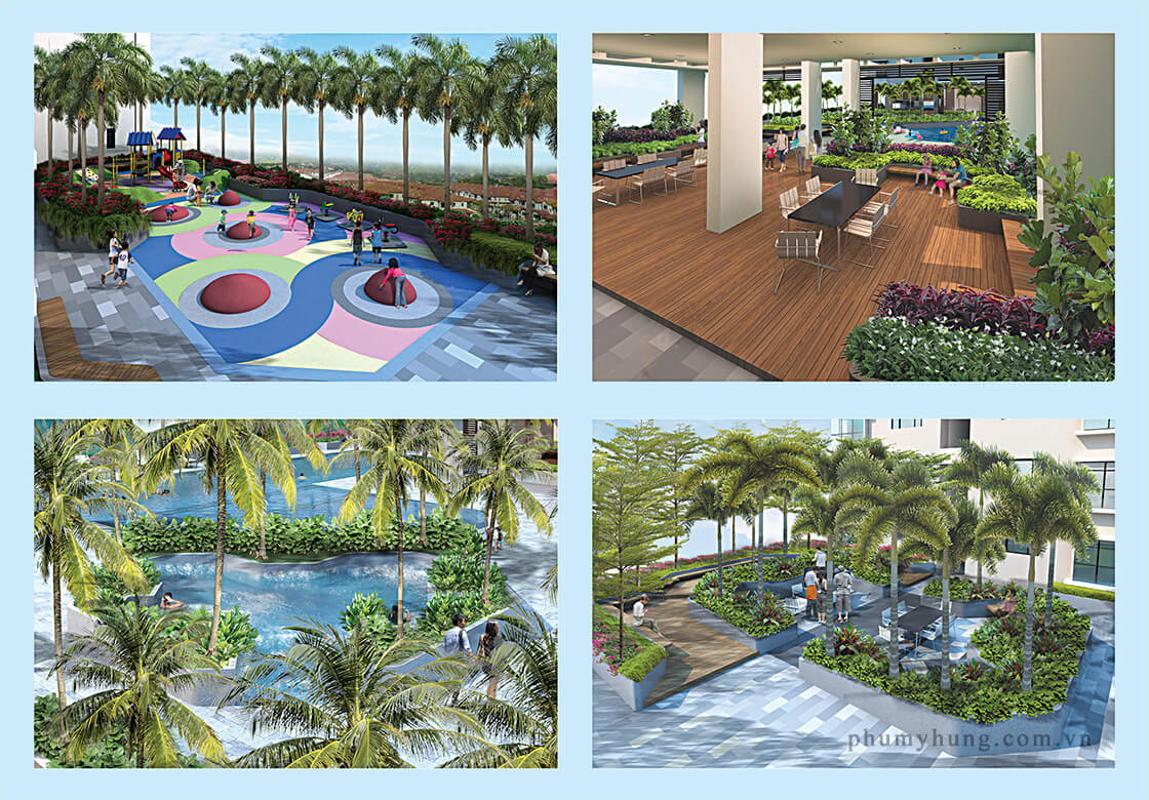 Điểm nhấn nổi bật của dự án chính là không gian kết nối 4 khối nhà tại tầng 2, tạo nên một thế giới tiện ích 5.000m2 ngay tại khu phố, bao gồm lối dạo bộ dài 250m, hồ bơi, jaccuzi, phòng tập gym, sân chơi cho trẻ, khu vực BBQ…