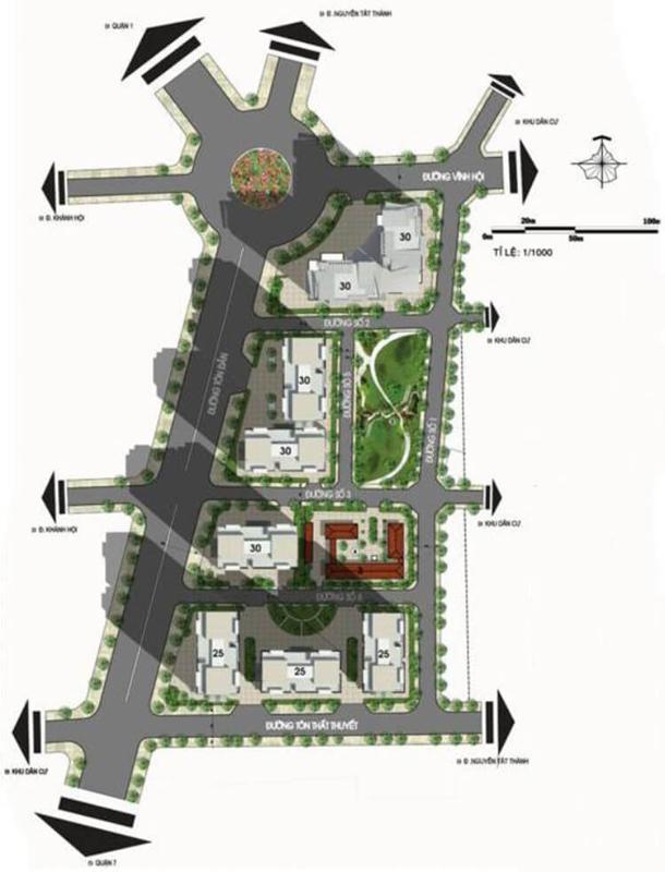 The centrally connected location An Phước Incomex is completely surrounded by several waterways, such as the Saigon River, Ben Nghe Canal and Kenh Te Canal, which are picturesque, romantic and verdant year-round. The site is bounded as follows: to the north by the extended Vinh Hoi Road, to the south by Ton That Thuyet Road, to the east by Ton Dan Road, and to the west by adjacent residential areas.