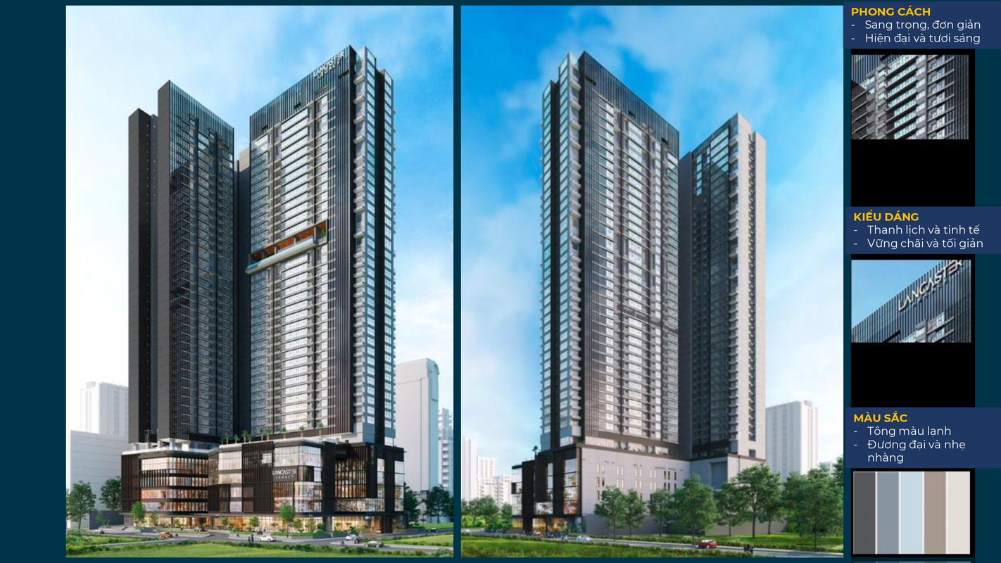 - Quy mô dự án dự án Lancaster Legacy: gồm 3 toà cao 37 tầng, 5 tầng thương mại và 5 tầng hầm.