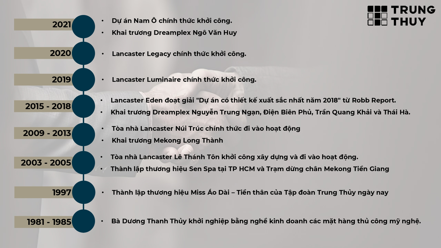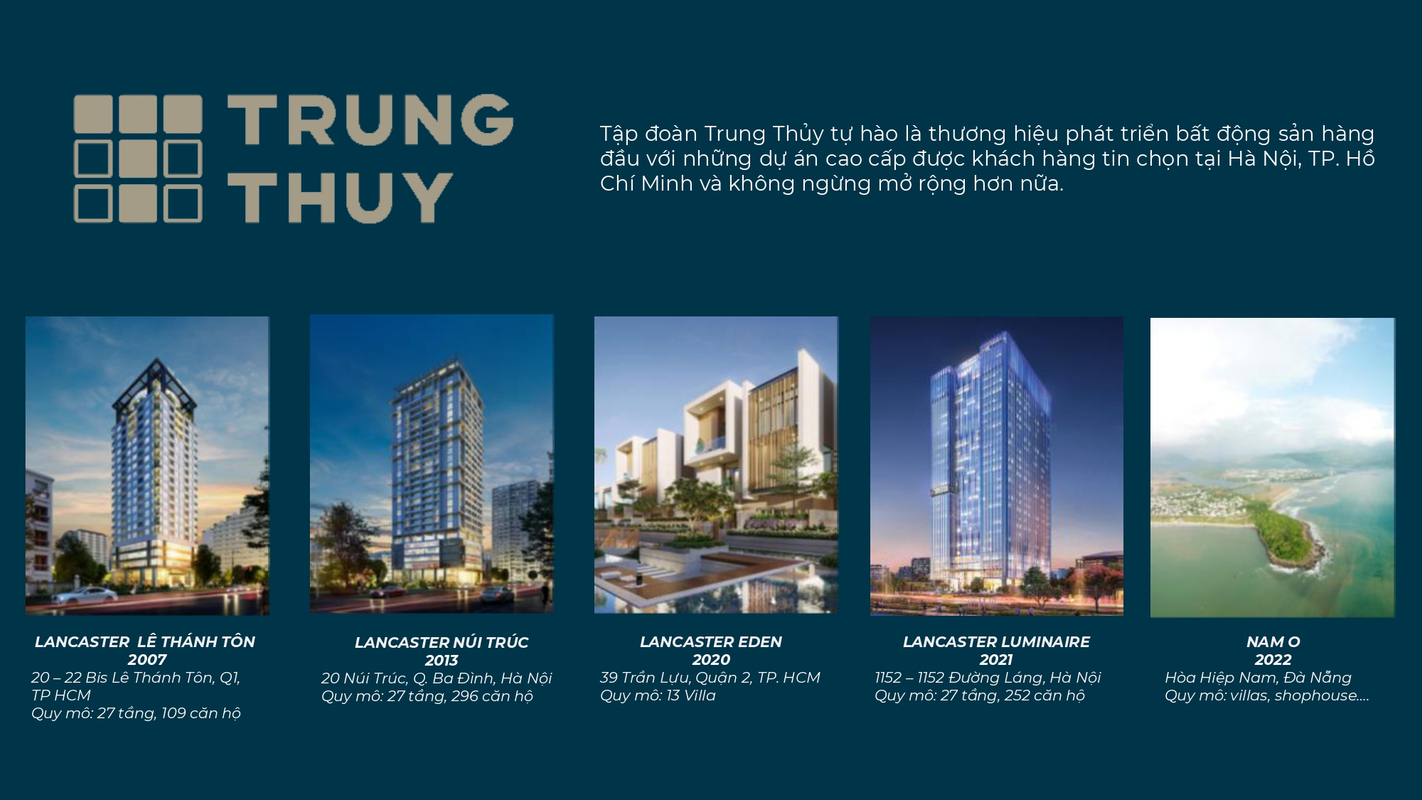 - Chủ đầu tư dự án Lancaster Legacy: Công ty TNHH Đầu tư Bất động sản T.N.T Trung Thủy (Trung Thủy Group)