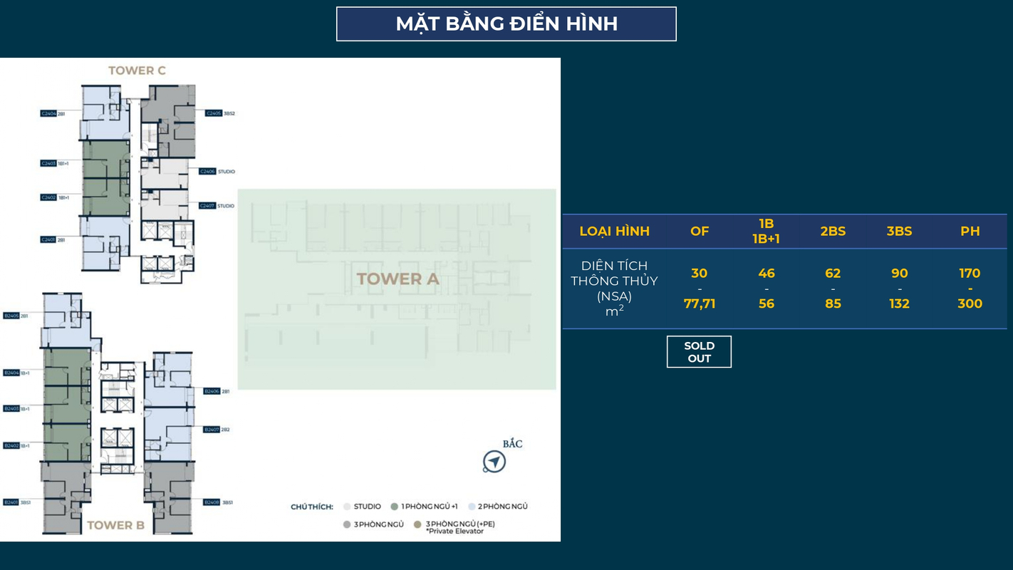 - Mật độ xây dựng khối đế 62%, khối tháp 40%.