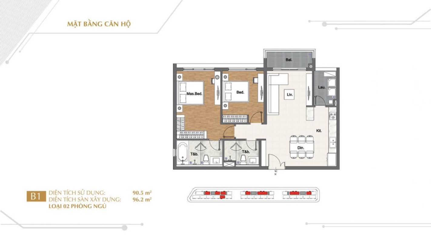 - Diện tích căn hộ 2 phòng ngủ: 89.7 m2 – 119.2 m2.