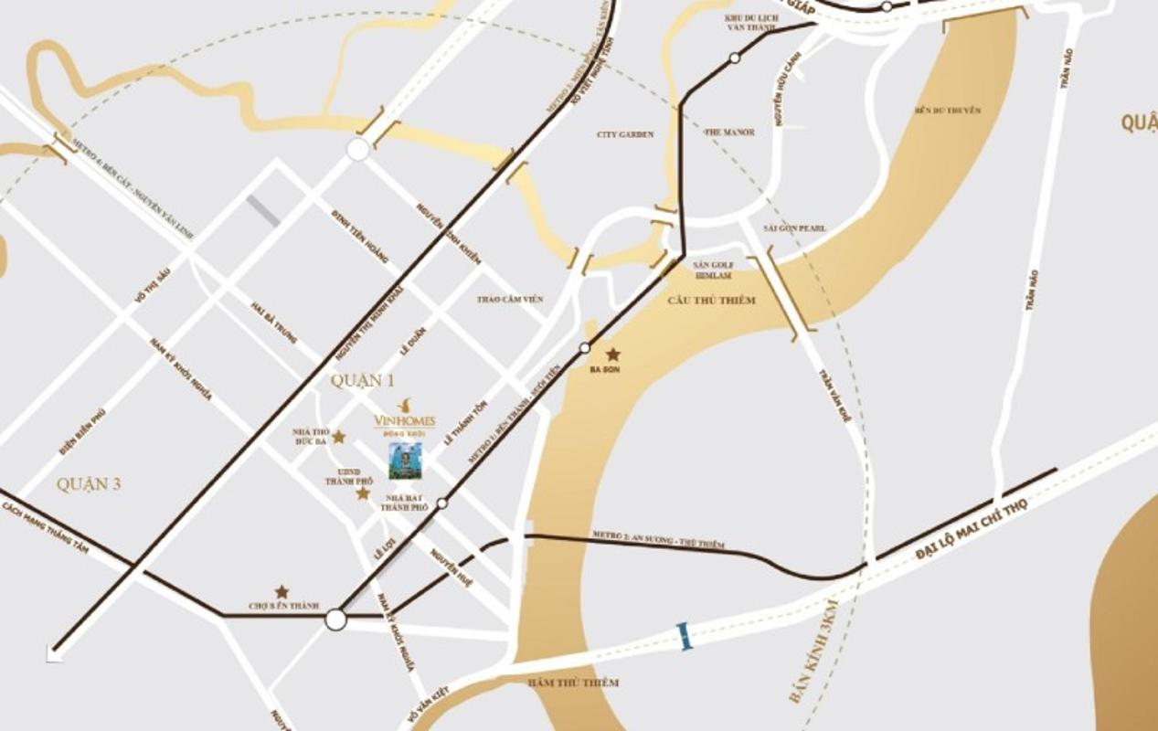 Vinhomes Đồng Khởi do chủ đầu tư Vingroup triển khai, được ví như Hòn Ngọc Viễn Đông giữa lòng Sài Gòn nằm trên những cung đường danh giá bậc nhất trung tâm thành phố, 3 mặt tiền đường Đồng Khởi – Lê Thánh Tôn và Lý Tự Trọng với tầm nhìn tuyệt đẹp bao quát toàn bộ trung tâm thành phố hướng ra sông Sài Gòn, Phố đi bộ Nguyễn Huệ, Nhà Thờ Đức Bà.