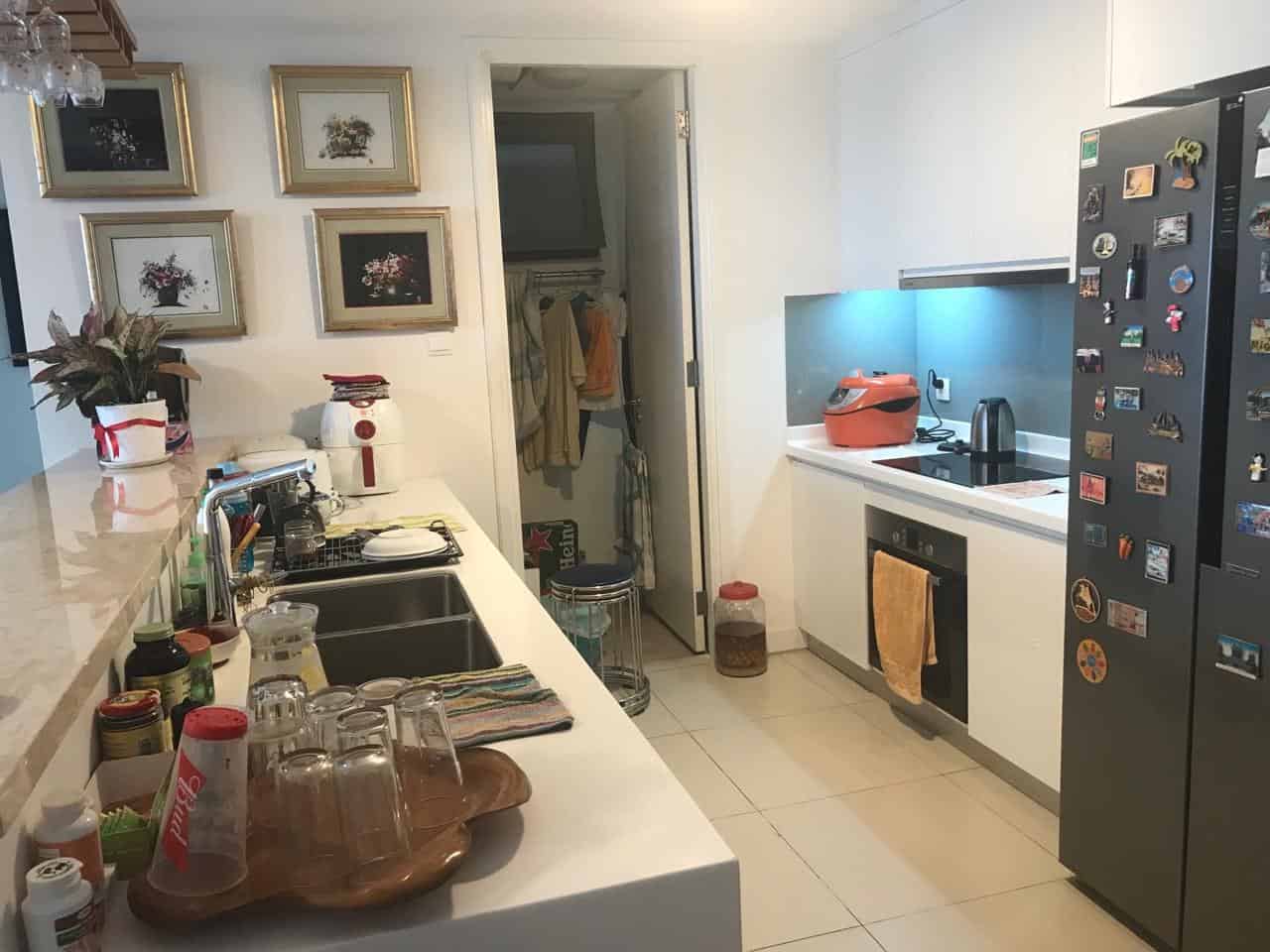 In terms of interior, the apartment at Gateway Thao Dien is reasonably designed to maximize the usable space. It is equipped with high-end furniture from SB Furniture, Teka complete kitchen, Kohler accessories for toilets, systems, etc. ceiling and ceiling air-conditioner … The dining room and kitchen area are interconnected to create a spacious and cohesive common space.