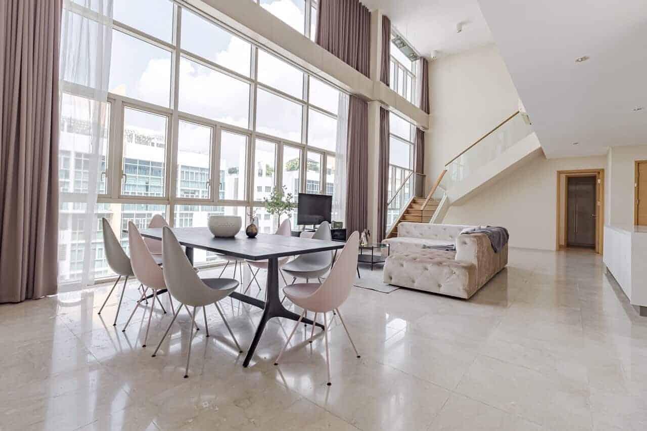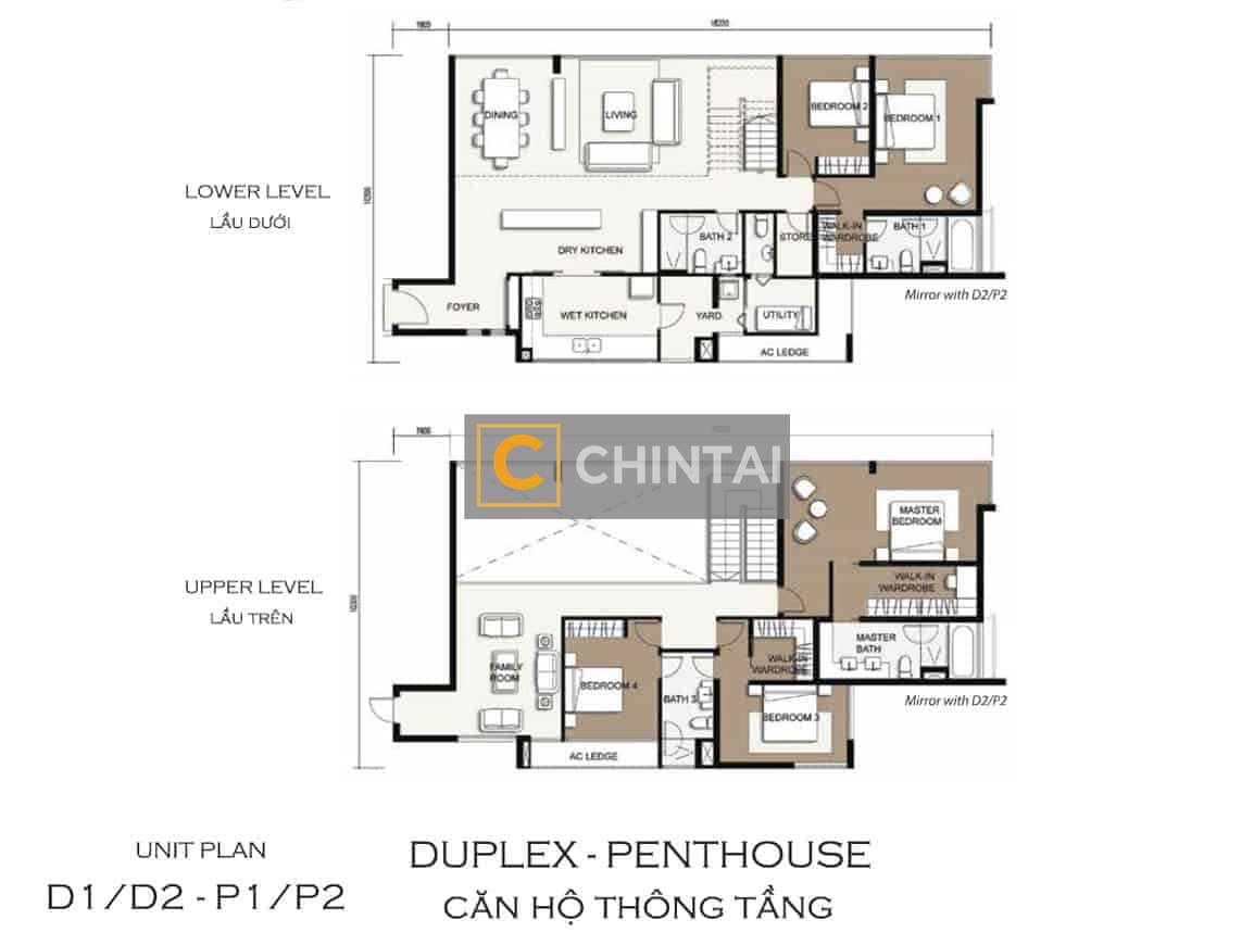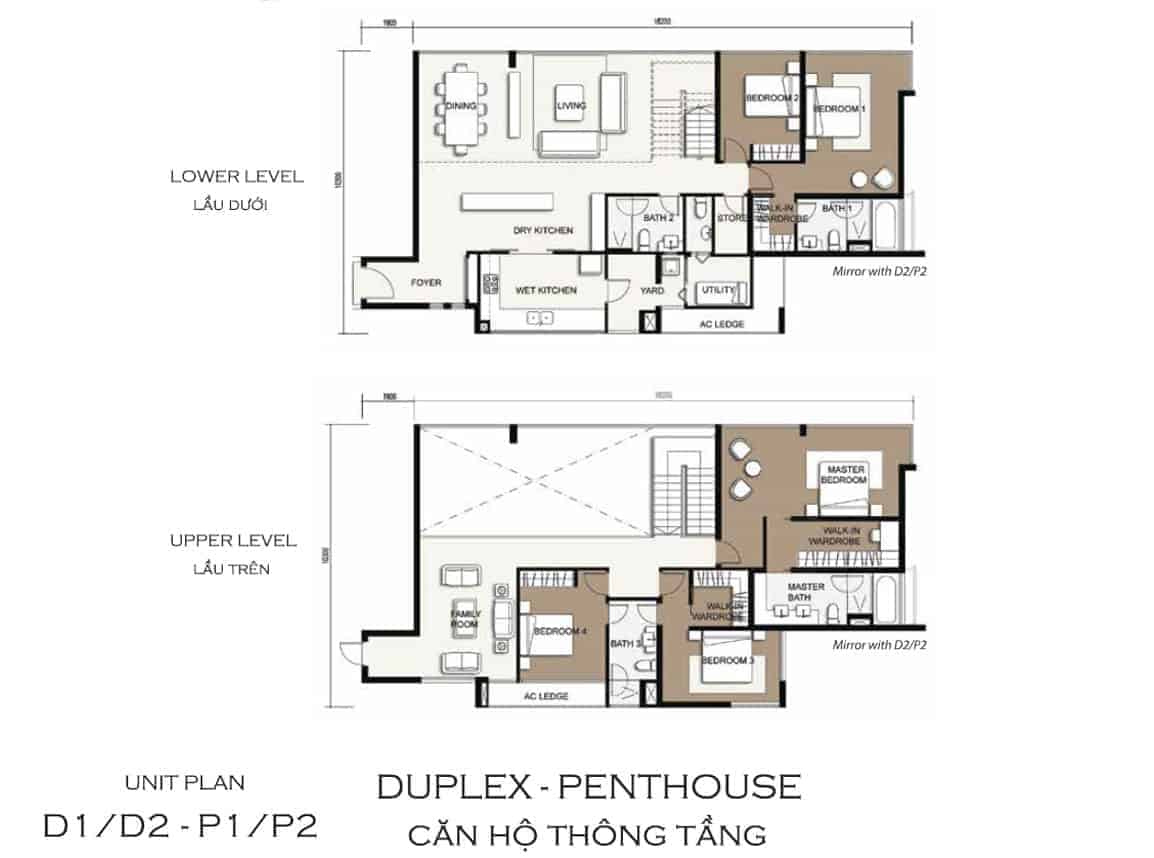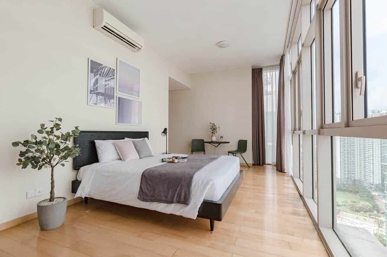 Penthouse in Vista An Phu for rent with fully furnished, this unit comprises of five bedrooms and four bathrooms across two floors. The open living room benefits from a high glass window from floor to ceiling, offering an abundance of natural light.Dry and Wet Kitchen in the center of the house, yet separated by a sling door prevented cooking smelly food. There is also a small storage room or a housekeeper room ensuite with a small toilet in the rear of the kitchen.
