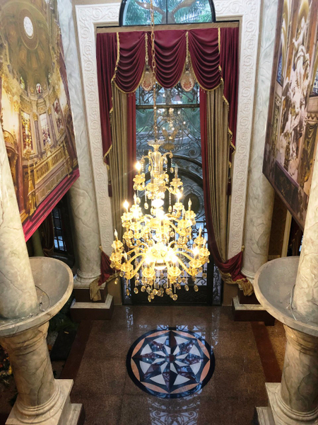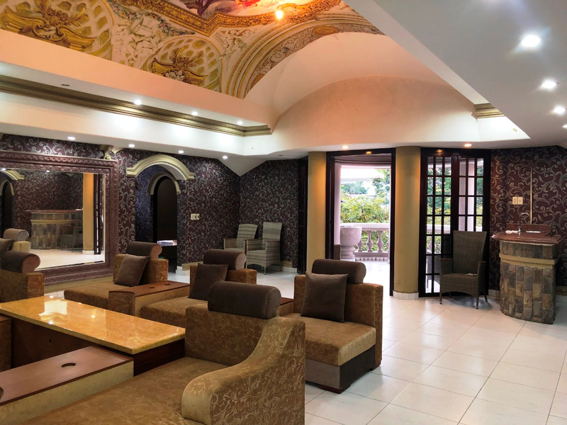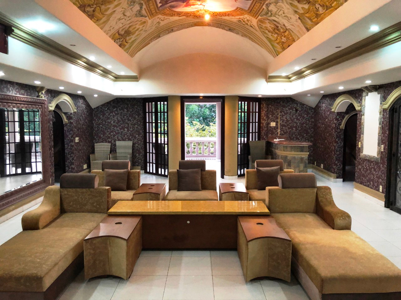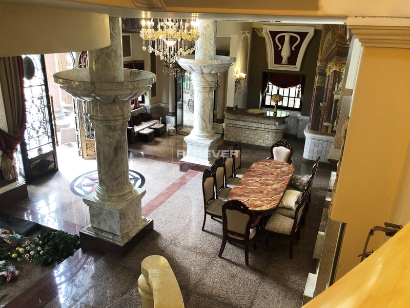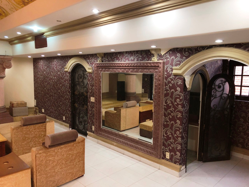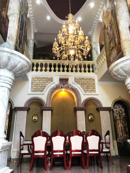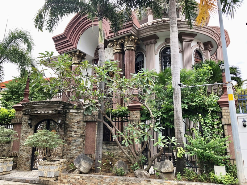 Kết cấu: 3 tầng (1 trệt và 2 lầu), gồm 1 phòng khách lớn, 1 phòng đọc sách, 1 phòng karaoke, 1 phòng chiếu phim, 1 chỗ ăn sáng, 1 bàn ăn lớn 10 người, 1 bếp lớn, 1 bếp phụ 2 cầu thang, 1 cầu thang chính, 1 cầu thang phụ cho giai nhân, 4 ban công, 5 phòng ngủ có thể làm thành 7 phòng ngủ, 3 quầy rượu sân vườn trước và sau, 8 phòng tắm, 1 phòng giải trí, 1 phòng giai nhân, 1 hồ bơi, có thác nước bự, sân trước, sân sau và bên hông đậu được 3 chiếc xe hơi.