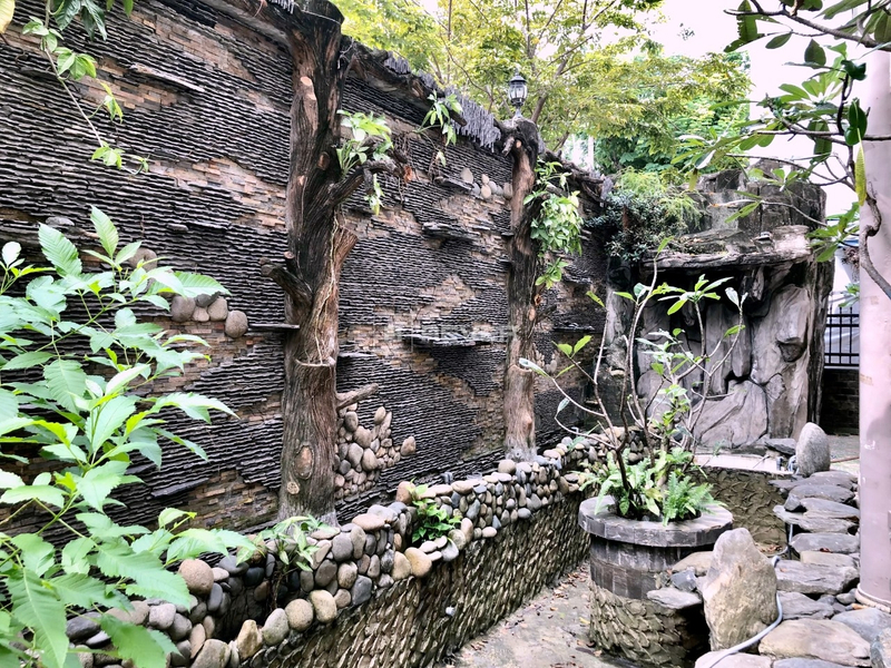 Nhà được xây dựng với vật liệu cao cấp như tất cả, sàn nhà và tường đều được ốp granic và mable, sân vườn ốp đá dày 5 phân, tường nhà dày 30 -40 cm