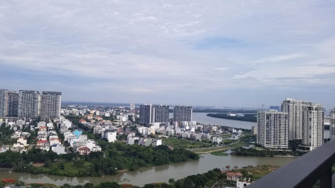 - Ban công thoáng mát, lộng gió nhìn về phía thành phố và sông.