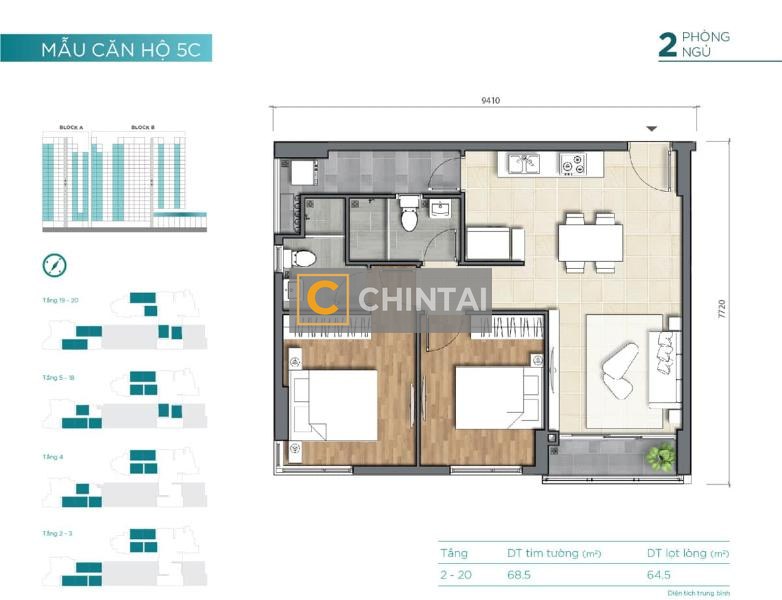 Diện tích: 68.5m²
