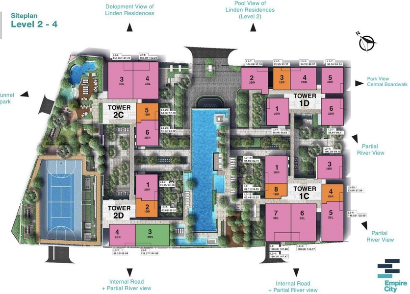 Nếu Sala Đại Quang Minh nằm ngay trung tâm Thủ Thiêm thì Empire City cùng Eco Smart City được đánh giá là vị trí vàng trong vàng. Dự án nằm liền kề hầm Thủ Thiêm với một mặt trải dài trên trục đường Mai Chí Thọ (Đại lộ Đông Tây) và một mặt giáp sông Sài Gòn với tầm nhìn vĩnh viễn hướng về trung tâm thành phố.