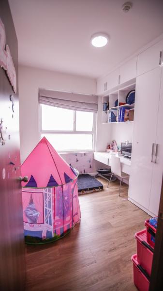 - Căn hộ được thiết kế có bàn làm việc ngay cửa sổ phòng khách, view thành phố và Landmark 81 tuyệt đẹp. Đây là không gian lý tưởng cho các bạn trẻ có thể thoải mái học tập và làm việc.
