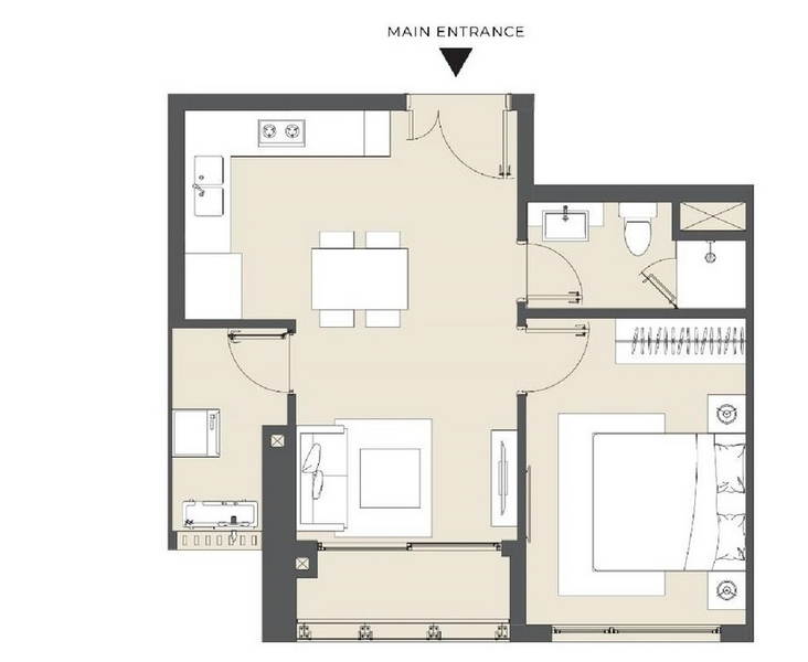 - Kết cấu: 1 phòng ngủ và 1 phòng tắm.