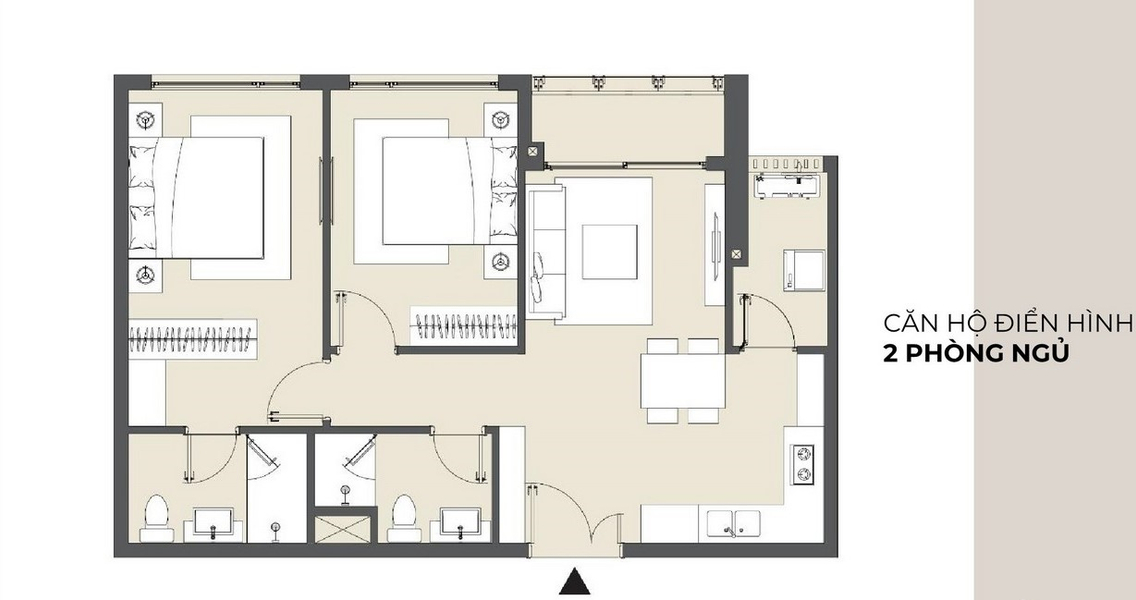 - Kết cấu: 2 phòng ngủ và 2 phòng tắm.