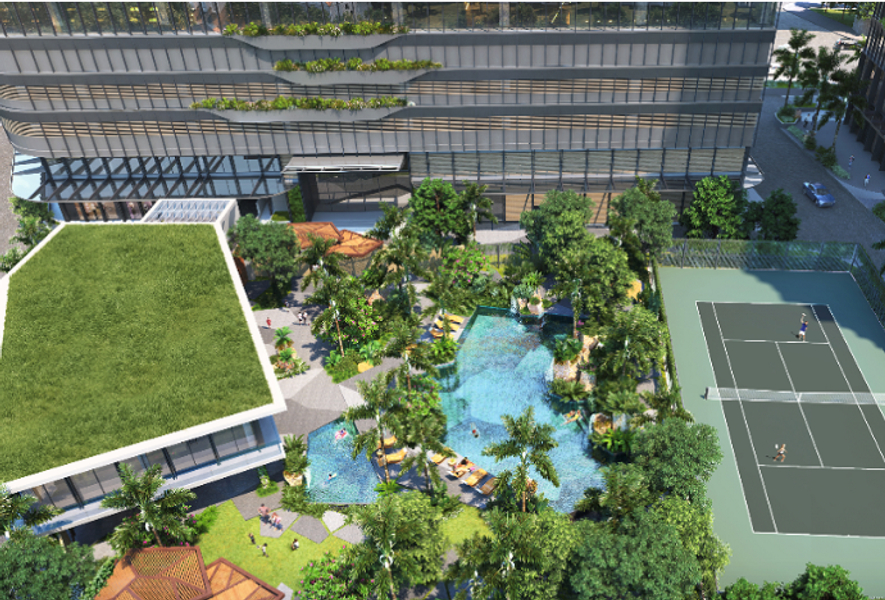 - Ban công thoáng mát, view hồ bơi thoáng mát.