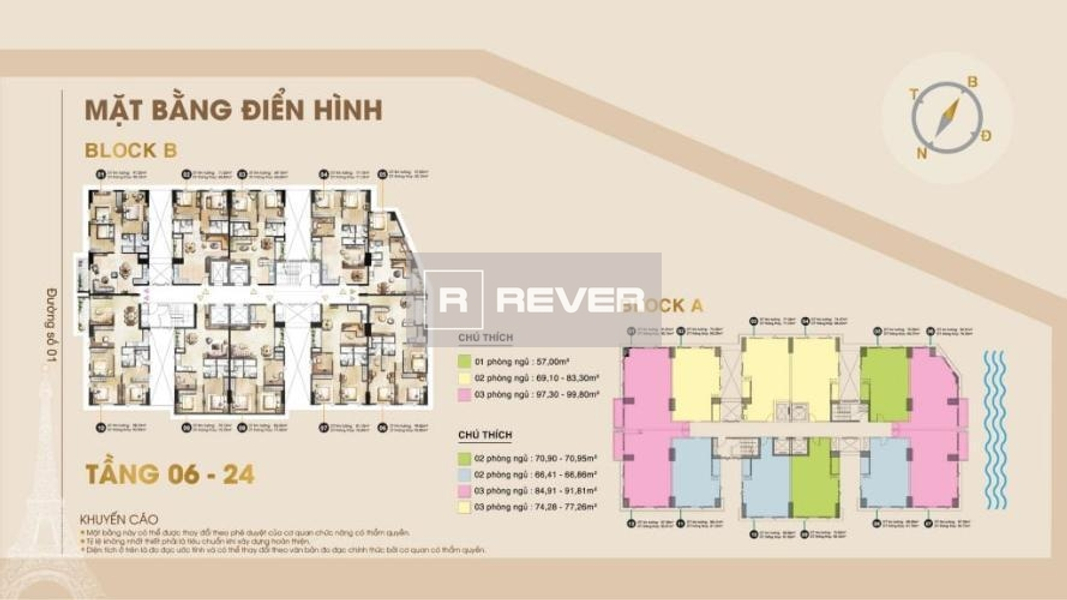 Căn hộ Paris Hoàng Kim hướng ban công nam nội thất cơ bản diện tích 77m².