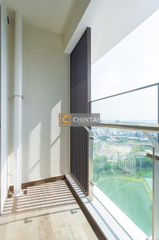 - Ban công đón gió và ánh sáng thoáng mát, view căn hộ hướng Đông Nam, nhìn xuống đài phun nước. Cửa chính hướng Tây Bắc.