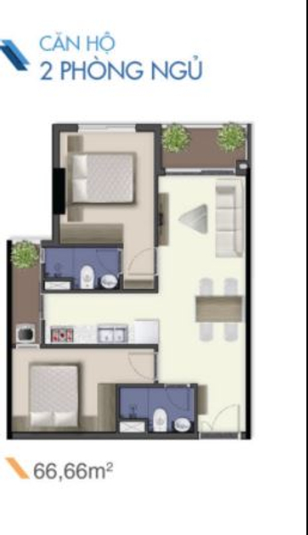 Kết cấu: 2 phòng ngủ, 2 phòng tắm