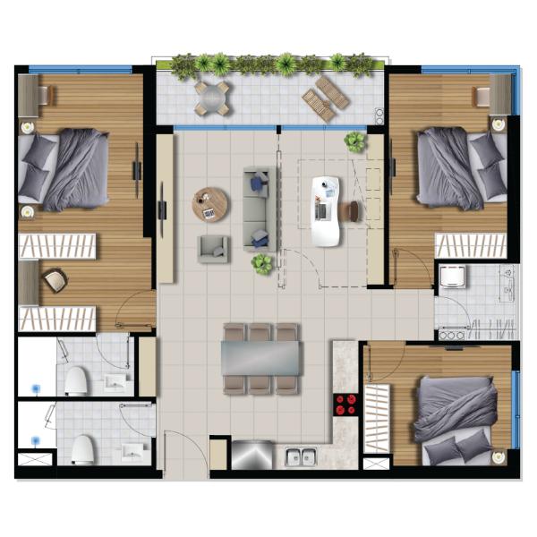 Căn hộ 3 phòng ngủ là sự lựa chọn hàng đầu dành cho các đôi vợ chồng trẻ, hộ gia đình từ 2-4 thành viên muốn tìm kiếm một chốn an cư để yên tâm lập nghiệp nơi thành phố đông đúc này.