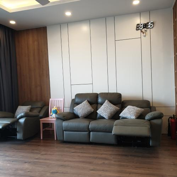 - Phòng khách có kính lớn đón nhiều ánh sáng tự nhiên, view thoáng mát.