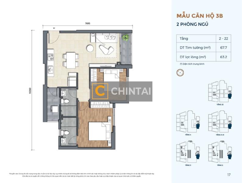 - Kết cấu: 2 phòng ngủ và 2 phòng tắm.