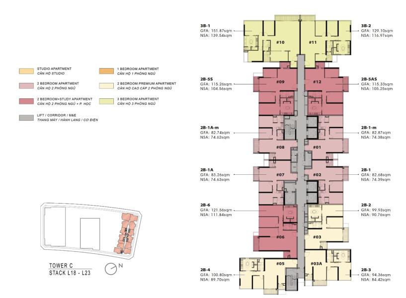 - Kết cấu: 2 phòng ngủ và 2 phòng tắm.