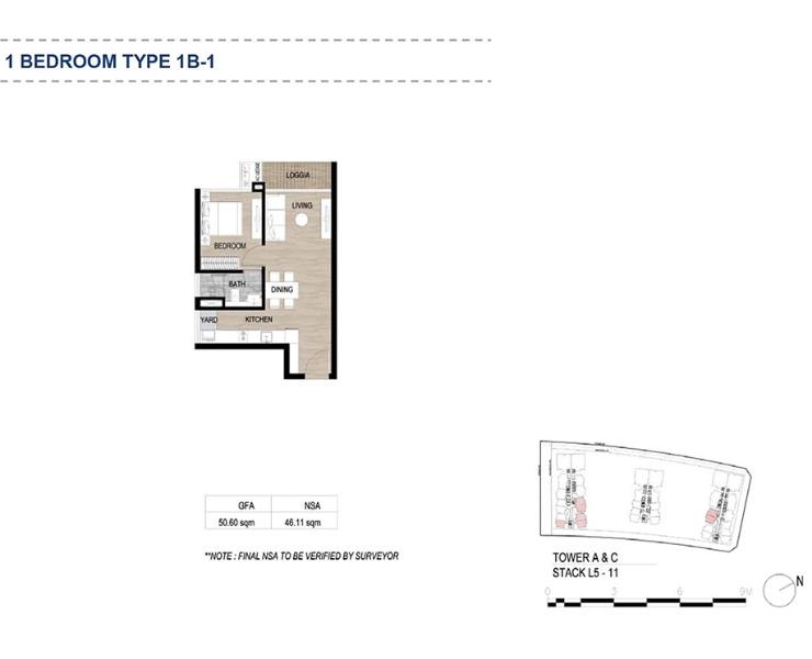 - Kết cấu: 1 phòng ngủ và 1 phòng tắm.