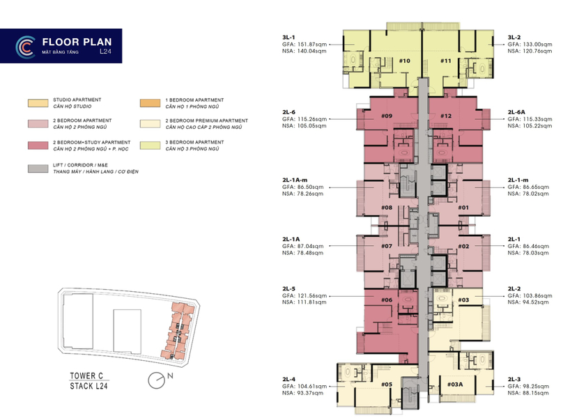 Kết cấu: 2 phòng ngủ 2 phòng tắm