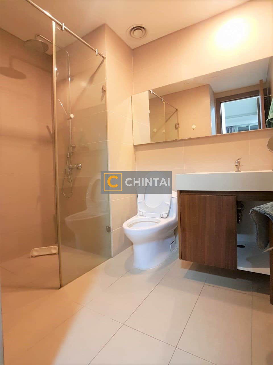 - The spacious master bedroom is flooded with sunlight with floor-to-ceiling windows.