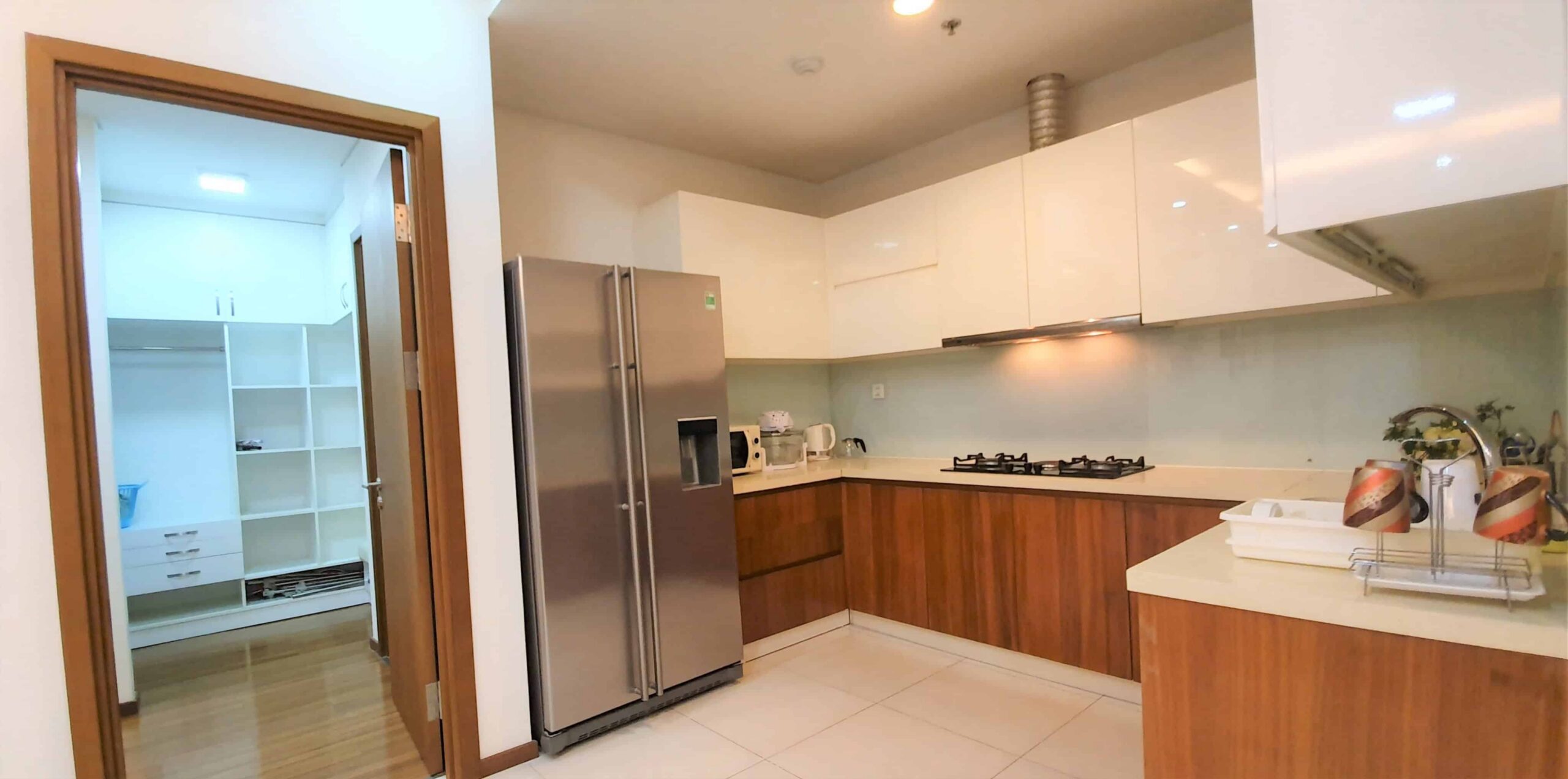 - The kitchen is equipped with all essential appliances. Very good size with plenty of workbench and cupboard spaces.