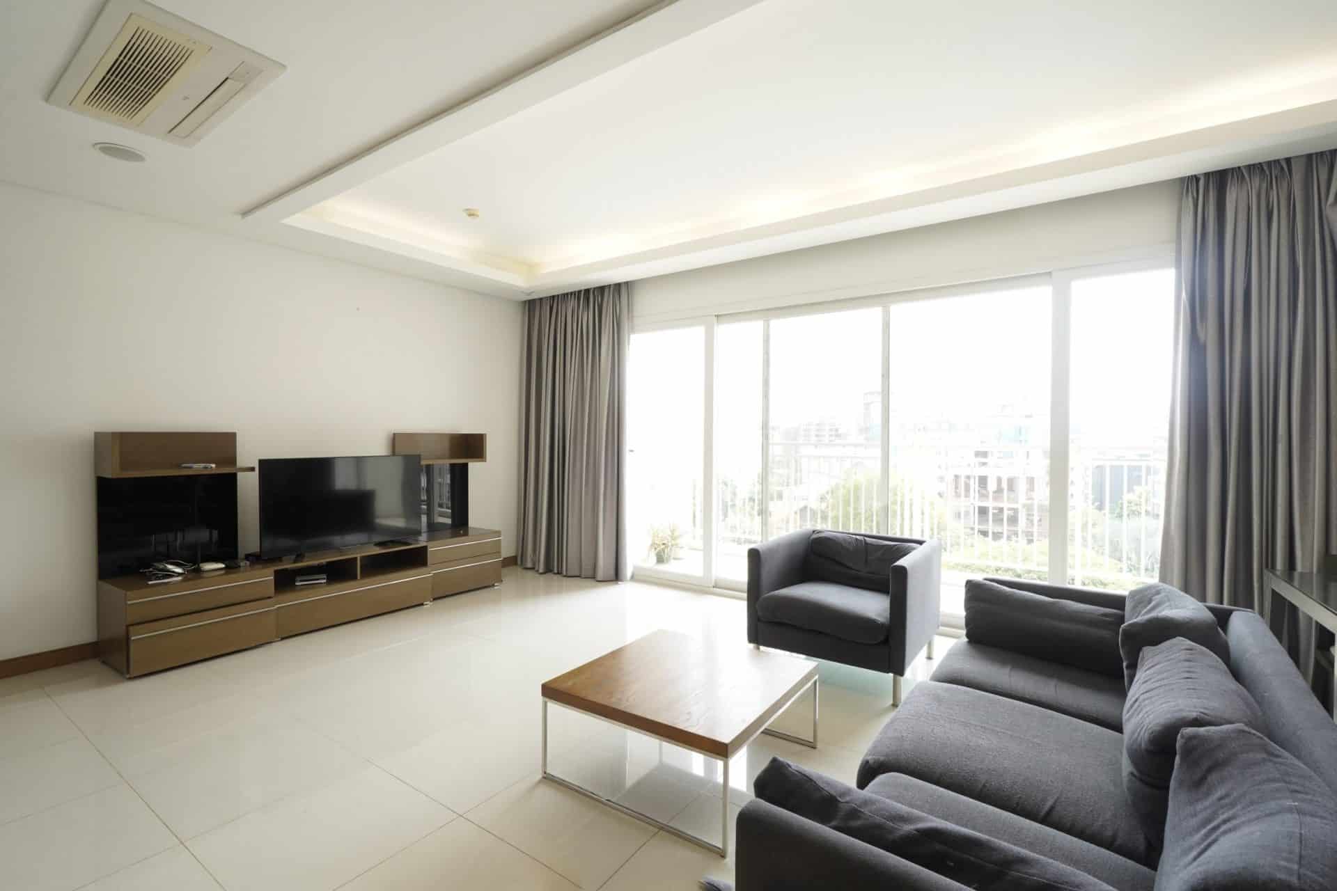 Charming 145 Sqm Xi riverview palace for rent - District 2 located in a quiet residential area outside of district 1, but close enough to throw yourself into the hustle and bustle of the Thao Dien area. This Charming 145 Sqm Xii Apartment For Rent - District 2 consists of a living room with an open-plan kitchen, dining table, master bedroom with en-suite, further 2 bedrooms, and separate bathroom also benefits from balconies with stunning views. The living room boasts huge windows, purified centralized air-con, and water systems, big terraces, floor-to-ceiling windows, and light pass through to create a sense of spacious room space and close to nature. The entrance hall equipped with an ample shoe shelf, a smart lighting system that automatically turns on/off by censoring temperature. The main door powered by the master key system, which also is a parking location finder and an emergency parking alarm device. The master bedroom in the corner aspect of this apartment allows natural light to flood in from all angles. 2 small bedrooms with ample floor-to-ceiling built-in wardrobes and an additional balcony. The shower room offers a walk-in shower and has a stone effect glass panel, providing natural light into space. There are a further wardrobe and storage cupboard in the reception/kitchen. The kitchen has also been decorated to a high standard with integrated appliances and ample storage and modern fitted units to base and eye level with built-in electric oven and hob with stainless steel extractor hood over. Perfect for anyone, this Xii Riverview Palace apartment is ideally positioned to enjoy summers in the tropical region Southeast of Vietnam. The development provides residents with a 24-hour concierge service and an excellent 4-layer anti-theft security system with a camera doorbell with a color screen and a leisure suit. Charming 145 Sqm Xii Apartment For Rent - District 2 Utilities included a Modern and well-equipped gym with spa facilities, a convenience store, indoor golf course, restaurant, children’s play area, swimming pool, guest house, tennis court. Comparing to new high-rise residential buildings in District 2, Xii Riverview has advantages over its design, only four units per floor, separated walls each apartment, allowing ventilation, and a tranquil atmosphere. Charming 145 Sqm Xii Apartment For Rent - District 2 located in a quiet residential area outside the city center, but close enough to throw yourself into the hustle and bustle of Thao Dien ward where you could find an array of stylish and fashionable restaurants and bars located moments away from your doorstep.If you want to have more options about Xii Riverview Palace, please click on this link