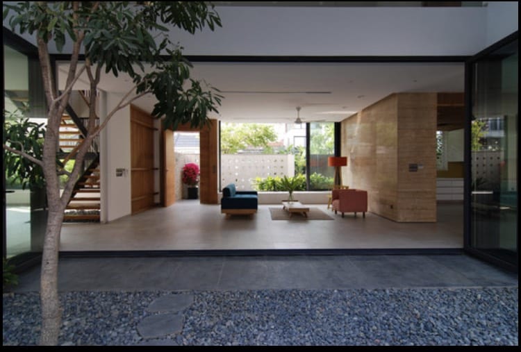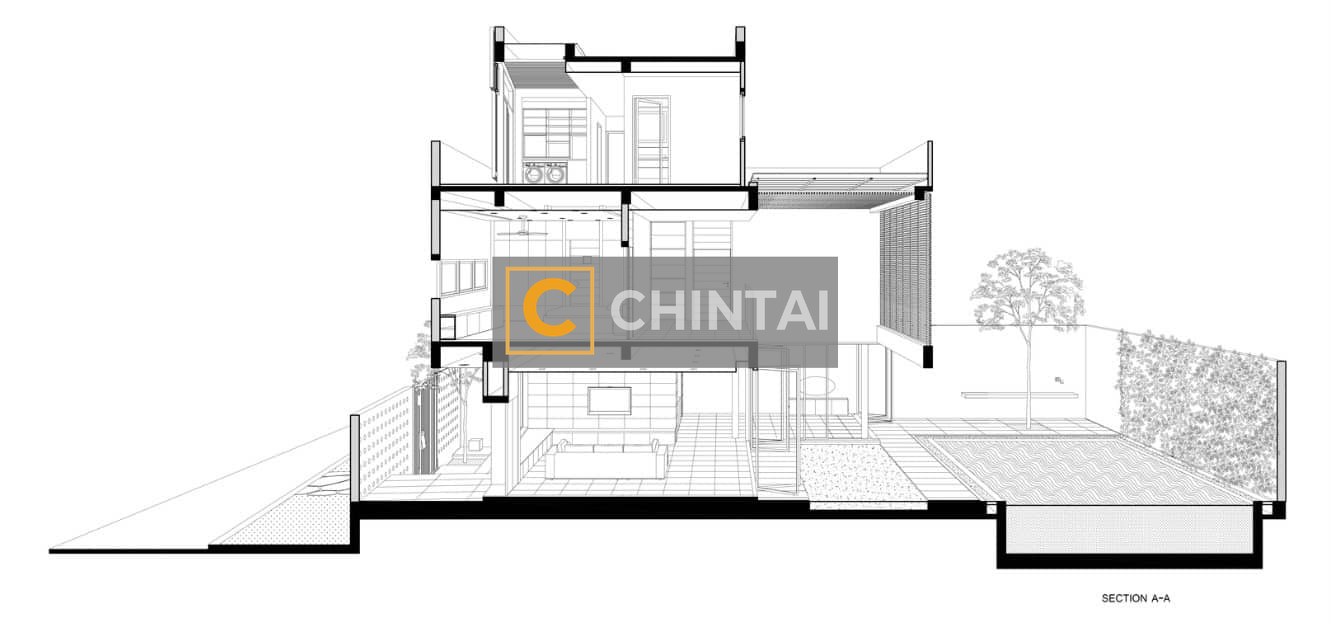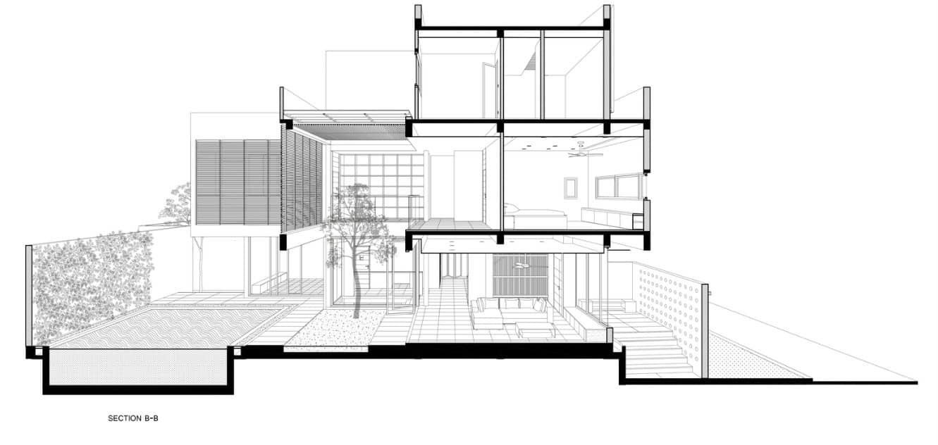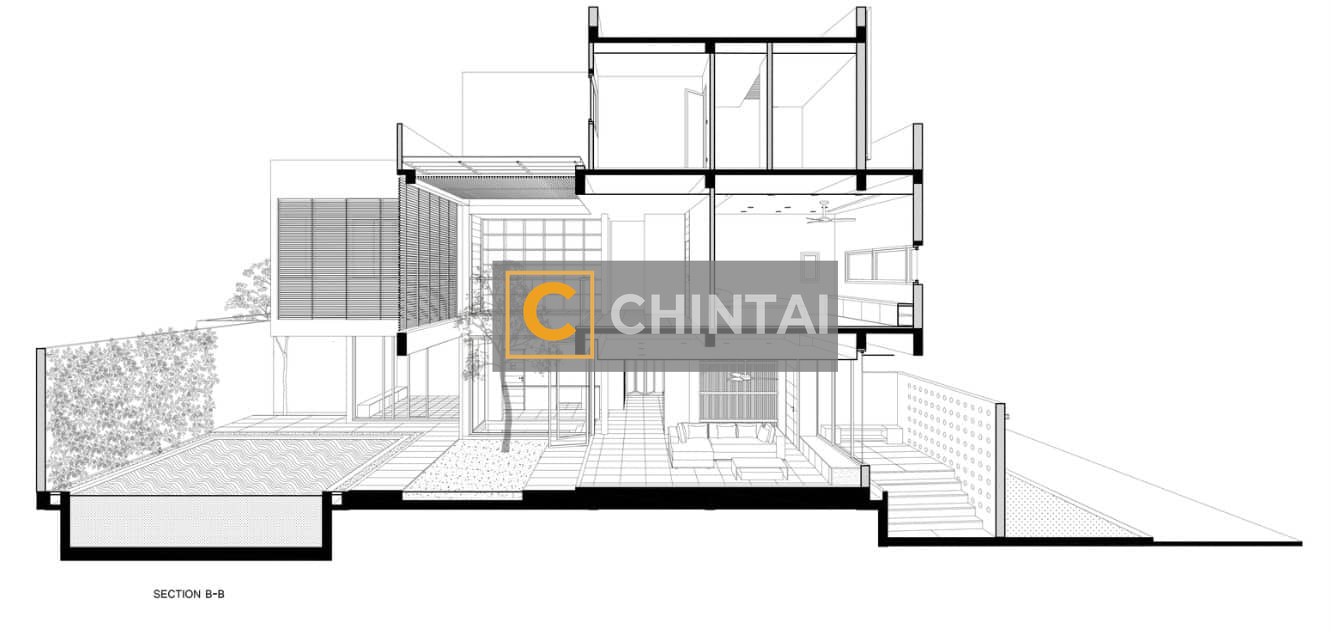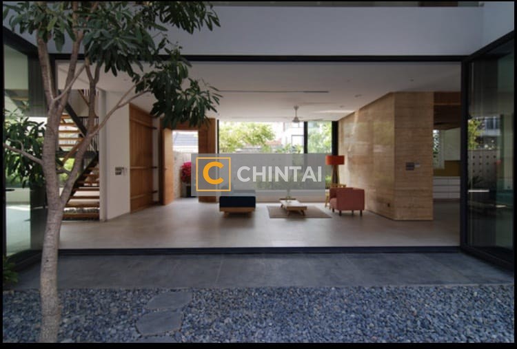 - Floor-to-ceiling windows fully expose the house to the natural environment.