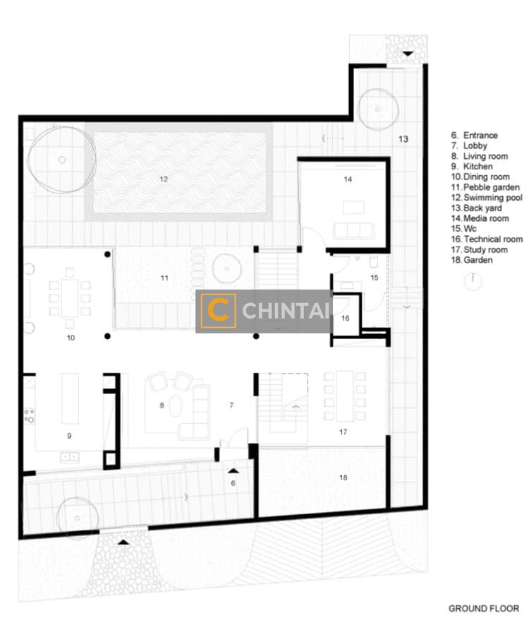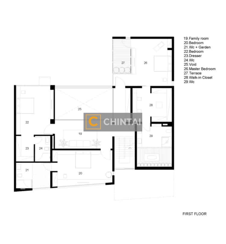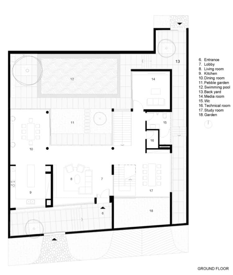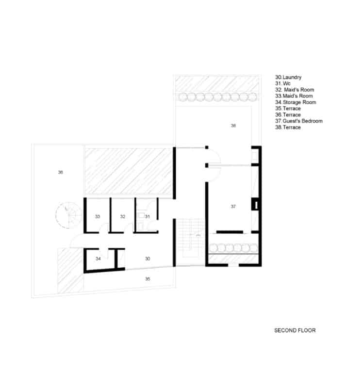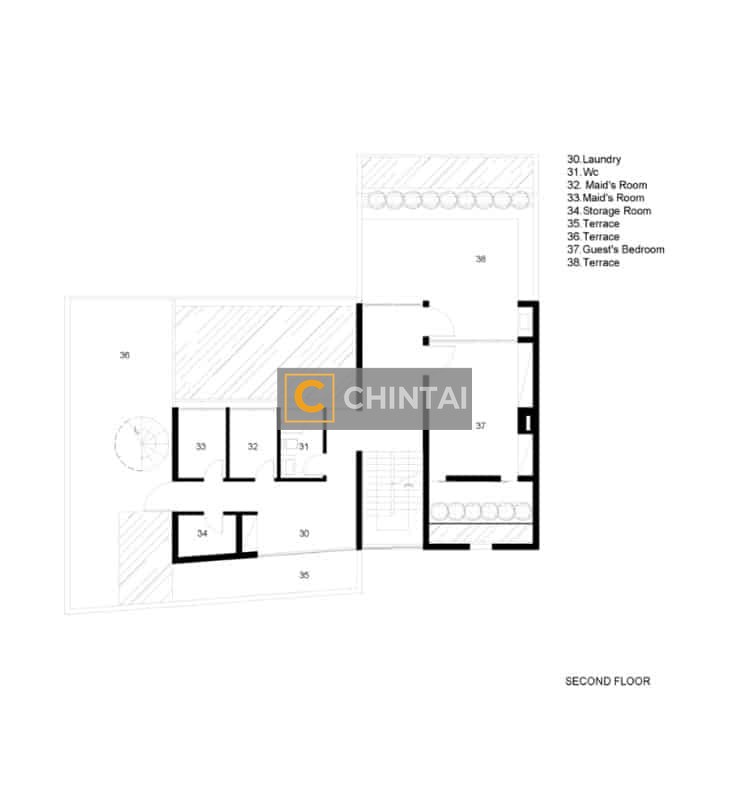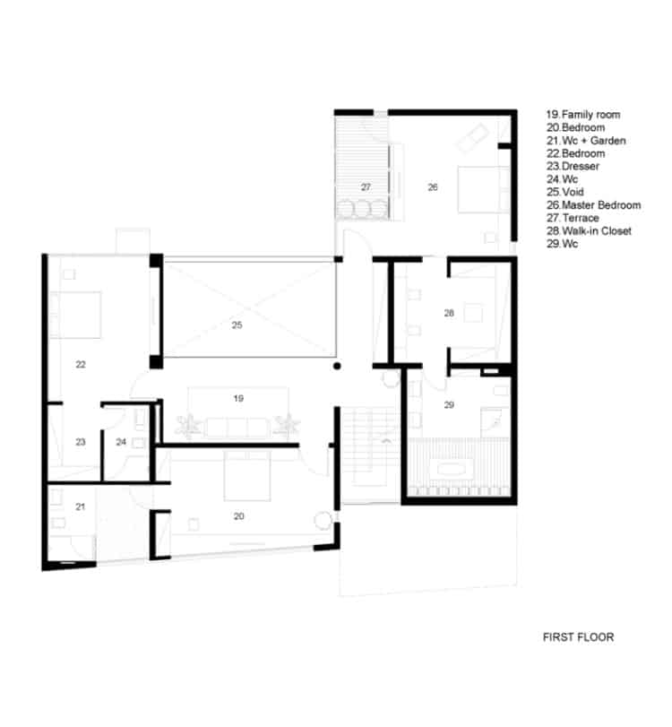 - Floor-to-ceiling windows fully expose the house to the natural environment.