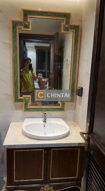- Kitchen: The kitchen is practical and neatly designed, with modern appliances including a refrigerator and built-in cabinets. The marble countertops and wooden cabinets provide both functionality and a sophisticated look.