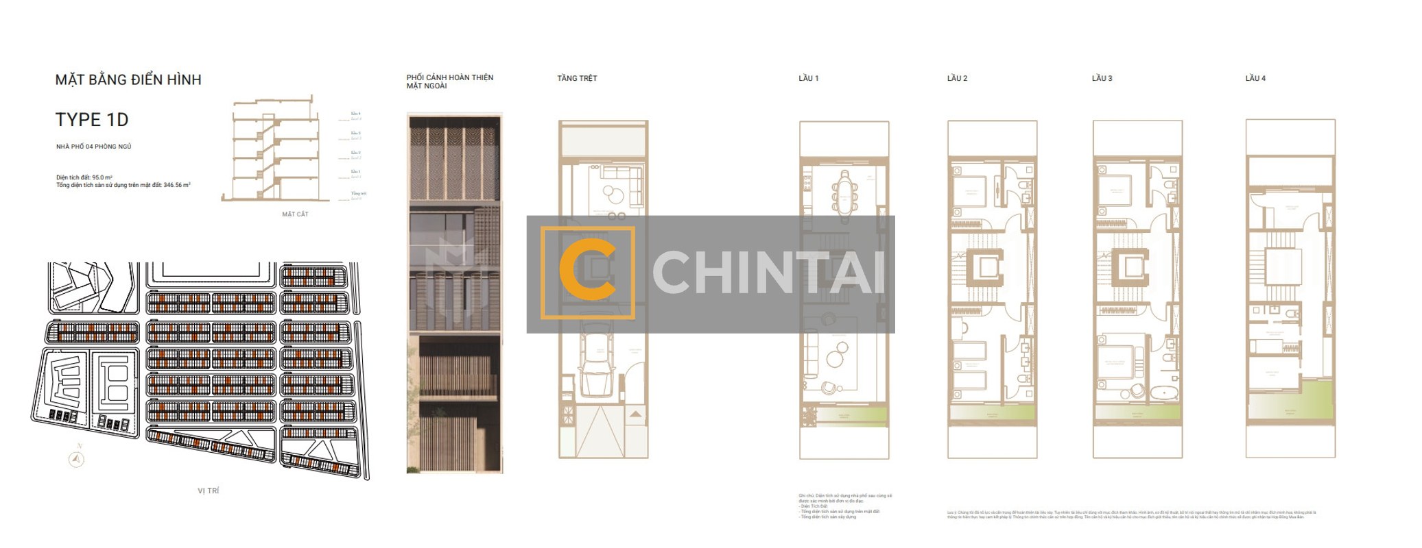 Kết cấu: 4 tầng (trệt + lầu), 5 phòng ngủ, 5 phòng tắm