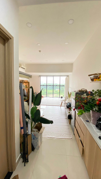- Phòng với ban công lớn có cửa kính lùa từ trần tới sàn tạo cảm giác thoáng mát, quang đãng cho căn phòng. View khu dân cư phía dưới.