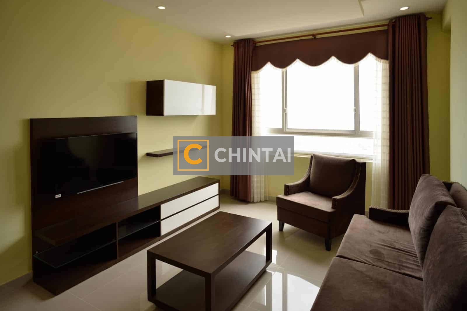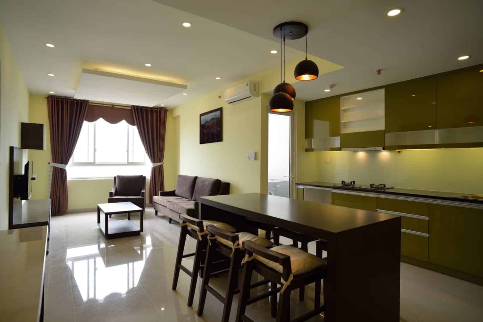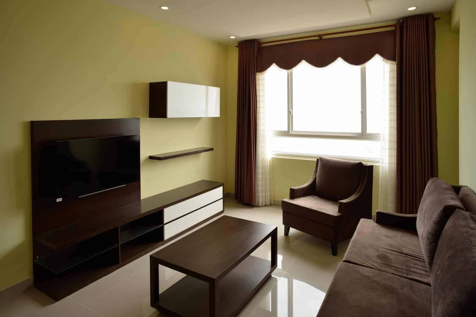Tropic Garden Apartment For Rent With Cheap Rental And Dark Wooden Furniture